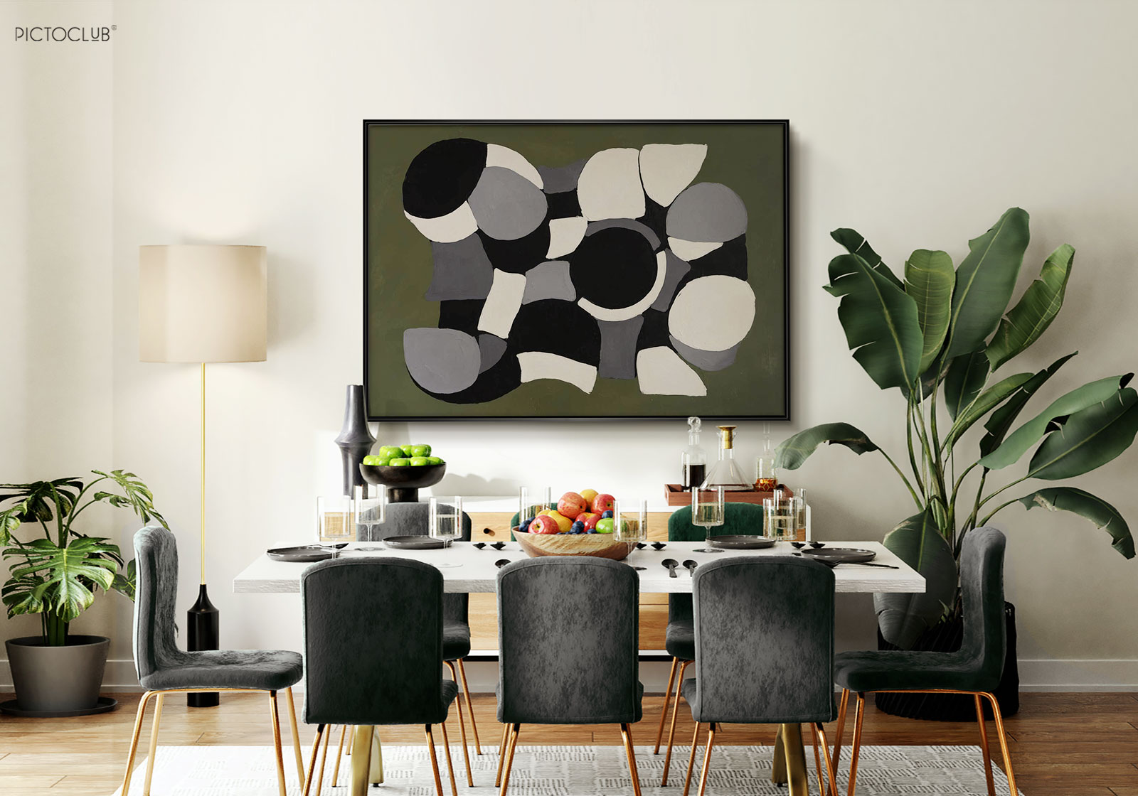 Depending on the finish, the artwork is either hand painted using mixed technique of oils and acrylics or printed with premium inks on canvas.